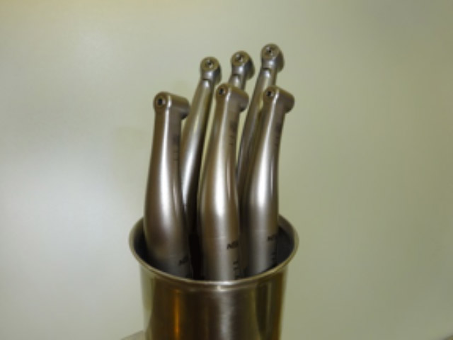 当院では使用したタービンのアルコール消毒による使いまわしはしていません。 常時25本以上のタービンを用意し、オートクレーブで蒸気滅菌したものをお一人お一人に使用しています。 |