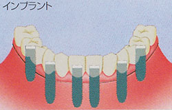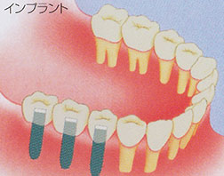 また、ブリッジ治療の場合前後の歯を削ったり、入れ歯治療の場合のバネを掛けたりすることが無く他の歯に負担が少ないのが特徴です。